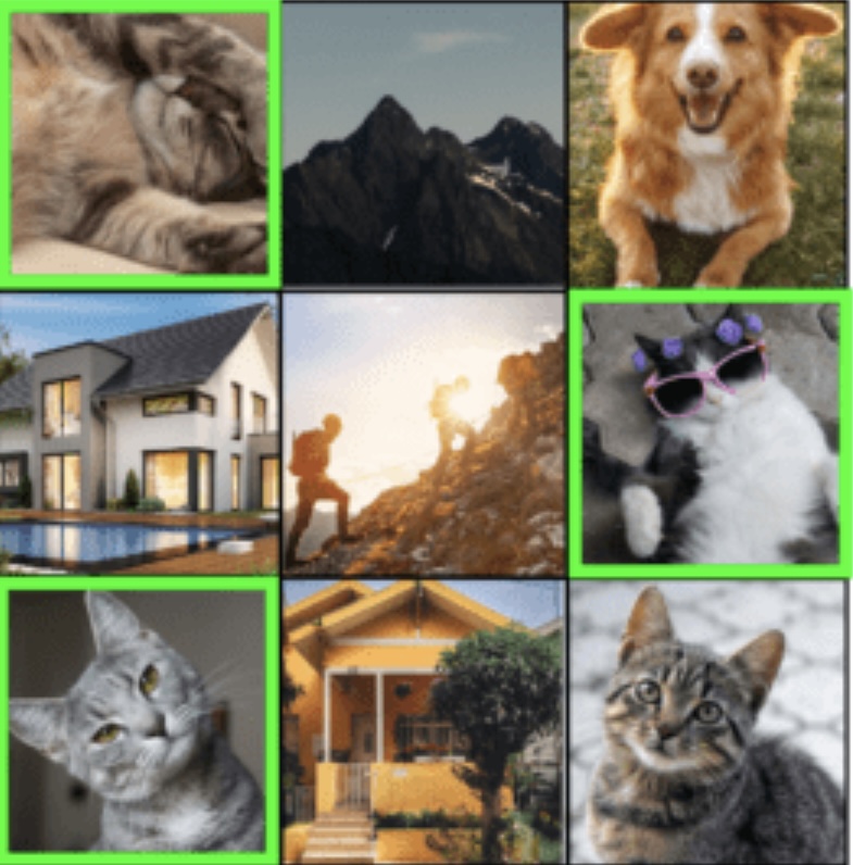 No Captcha abaixo o usuário deveria ter assinalado em verde todas imagens que continham gatos.