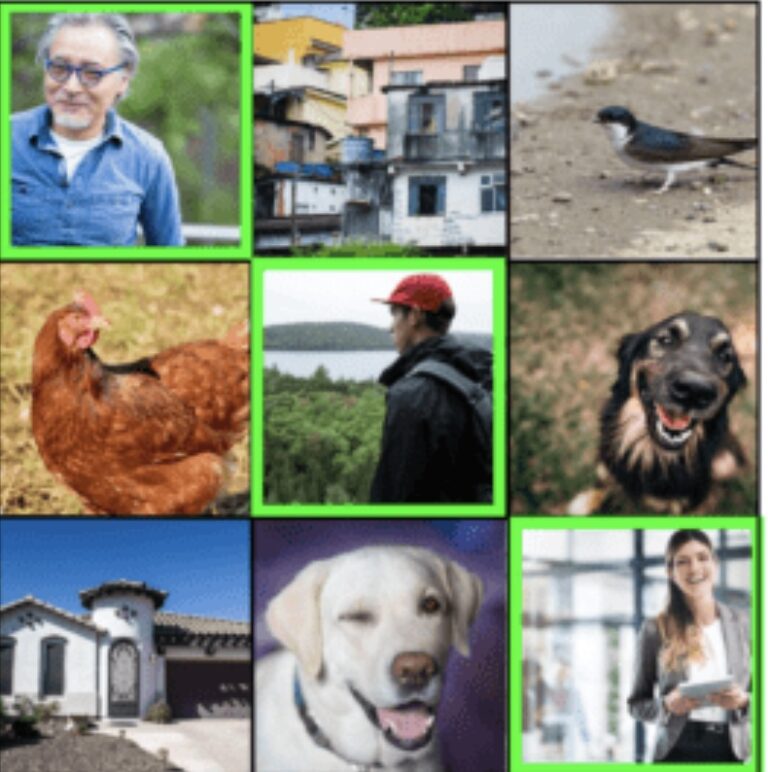 No Captcha abaixo o usuário deveria ter assinalado em verde todas imagens que continham pessoas.